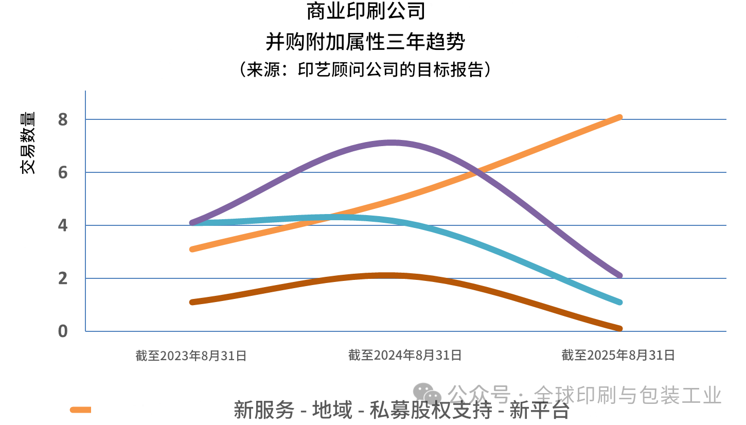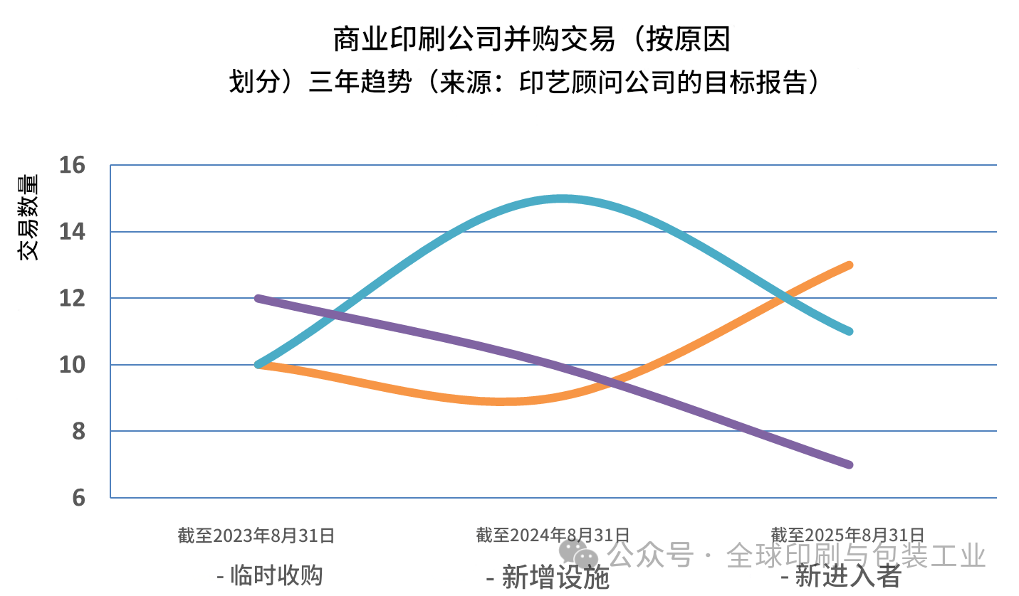 十四年來,GAA(印藝顧問公司)持續記錄與評論以包裝印刷行業為中心的多條業務線的并購活動,重點覆蓋商業印刷、包裝(標簽、折疊紙盒、軟包裝)、大幅面印刷市場等。在每年8月,都會回看過去12個月的交易特征,以判斷行業的未來走向:哪些細分的并購增多或減少?買方完成收購的主導邏輯如何變化?是擴張網絡還是并入整合?對未來各細分的潛在交易活動有何啟示?