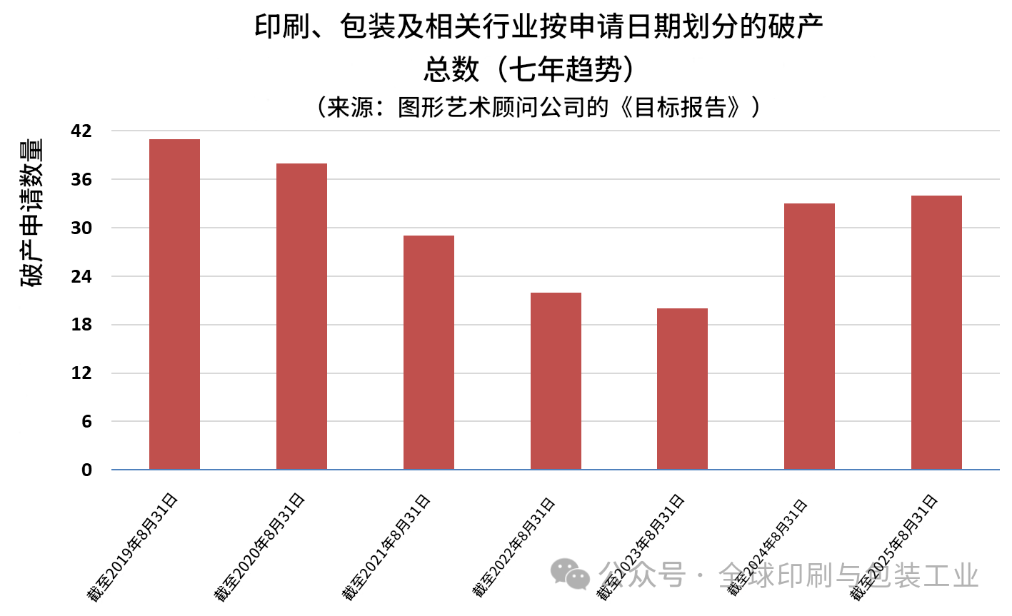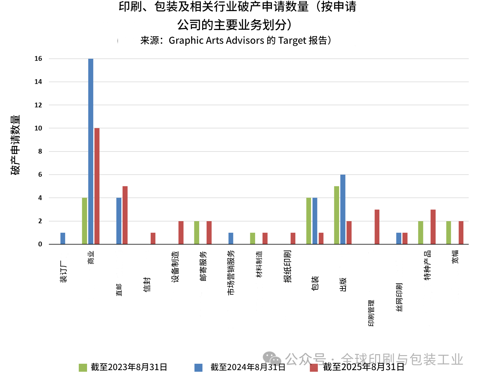 商業印刷在破產數上再次居于首位;其中5起來自直郵。但年度最受關注破產無疑是瀾達數字印刷公司。該公司全球裝機50d多臺、單機約350萬美元,累計消耗投資超13億美元后申請破產。對已裝機用戶而言,尋找買家接盤并持續供保是當務之急。最新公告顯示已完成出售交易。