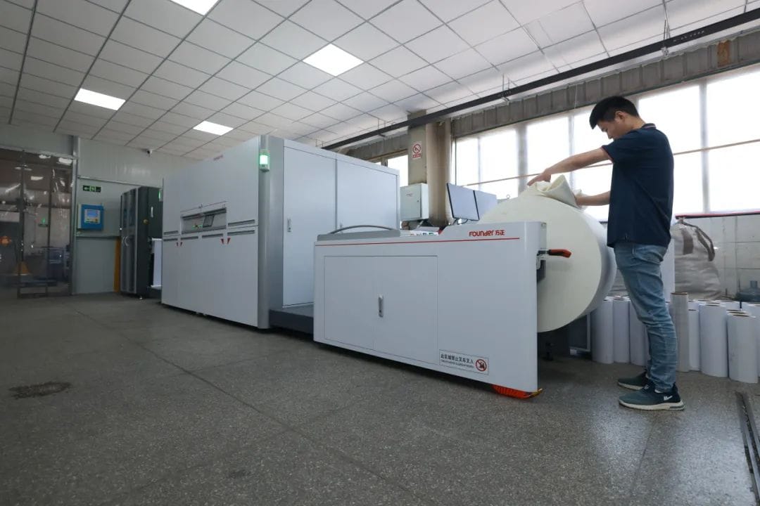 華泰興每年繁忙的時候,單月訂單量能突破一億印次,包括方正彩機在內的已有數碼設備,只能完成總訂單需求的50%—60%,至少有40%的訂單無法完成,只能推掉。于是,2024年,時佰峰又購入了第二臺方正噴墨設備——方正桀鷹P4400HD高清黑白機。談到增購,時佰峰表示,主要是想解決產能問題,“我們需要再上一臺數碼設備來改變生產不足的現狀。”