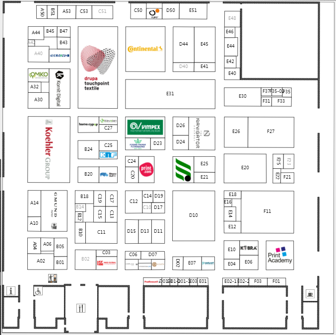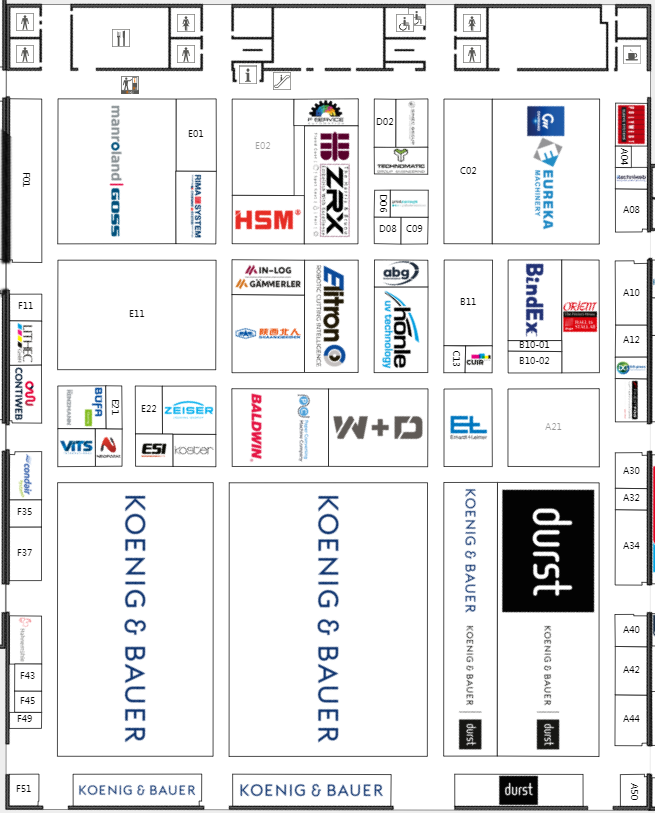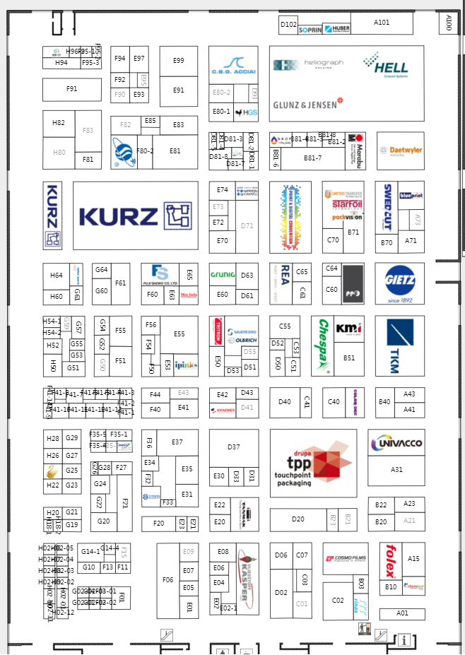 在約140000平方米的凈面積18個展廳里,所有參展商都將展示各自印刷技術領域的發展趨勢和創新想法。其中,包裝生產和印刷包裝是兩個同樣重要的領域。眾多全球知名展商悉數在列,例如:Bobst,Canon,Comexi,Duplo,EFI,Epson,ESKO,Fujifilm,Heidelberg,Horizon,HP,Kodak,Koenig&Bauer,Kolbus,Komori,Konica Minolta,KURZ,Landa,Müller Martini,Ricoh,Screen,Windm?ller&H?lscher,Xeikon。觀眾可以在www.drupa.de上在線查看參展商的完整名單。