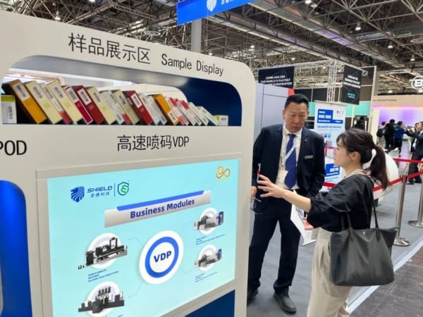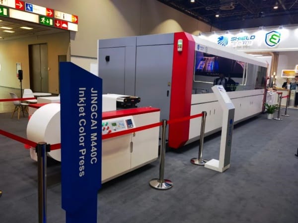 展會現場,圣德精彩M440C彩色高速噴墨印刷機成為焦點,其卓越的性能和獨特的設計吸引了眾多觀眾駐足觀看,并紛紛表達出對這款設備的濃厚興趣和好奇。