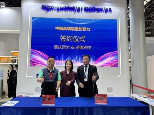 本次展會是圣德科技國際首秀,收獲滿滿:成功與CGS ORIS、深圳盛事科技有限公司簽約,開啟戰略合作,從而更好地為客戶提供顏色更加準確和穩定的噴墨印刷質量;迎來國際展會上的首簽,重慶市遠大印務有限公司(以下簡稱“重慶遠大")在drupa2024現場簽購2臺噴墨印刷設備。重慶遠大和圣德科技的合作長達20多年,是圣德科技發展歷程中的堅定支持者和見證者,此次簽約代表雙方合作進一步加深。