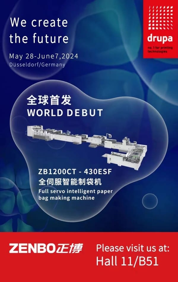 2024年5月28日,全球矚目的“2024德魯巴印刷展(drupa2024)”在德國杜賽爾多夫展覽館面向全球印刷行業盛大開幕!在近14萬平方米的凈面積和18個展館里,共有來自全球52個國家和地區1646家展商同臺競技。浙江正博智能機械有限公司(浙江正博)精彩亮相本屆德魯巴印刷展。