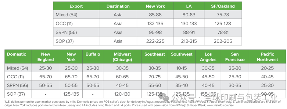 在經(jīng)歷了年初幾個月的價格上漲或穩(wěn)定后,北美廢紙市場在 5 月和 6 月迎來了顯著的疲軟期。幾乎所有區(qū)域的廢紙價格都出現(xiàn)了下跌,特別是兩大主力品種——舊瓦楞紙箱(OCC)和混合紙,以及過去一直相對堅挺的高等級紙,均未能幸免。