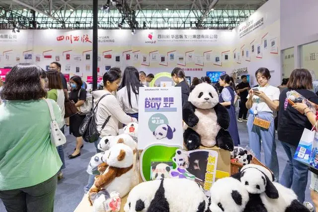 大熊貓人見人愛,凡跟大熊貓相關的事物,想不受歡迎都難。四川19家出版單位以“書寫四川出版輝煌篇章 綻放巴蜀文化時代光彩”為主題,整體亮相山東國際會展中心5號館。四川出版展區直接將出圈的實體書店——“熊貓書店”,搬到了書博會中——打造面積65平米的熊貓書店主題區,精心準備熊貓玩偶、熊貓冰箱貼、熊貓徽章、熊貓擺件、熊貓包包、熊貓水杯、熊貓小冊子等200余品種熊貓主題文創,為參訪讀者和“熊貓控”觀眾帶來一場熊貓主題盛宴,現場受到觀眾追捧,打卡的人潮絡繹不絕。