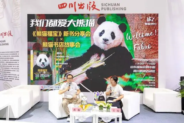 26日下午,我們都愛大熊貓——《熊貓福寶》新書分享會在書博會上舉行。《熊貓福寶》的作者、“熊貓作家”蔣林與熊貓書店選品官吳瑤進行一場熊貓文化主題對談。《熊貓福寶》是蔣林出版的第8部熊貓主題文學作品。從大熊貓明到大熊貓花花再到大熊貓福寶,蔣林用8部作品,從歷史、文化、生態文明等多方面講述了大熊貓幾十年的發展歷程。當吳瑤問道,有《熊貓花花》成功在前,這次創作《熊貓福寶》會不會壓力很大?蔣林笑言:“沒有壓力。我一直覺得,我們四川有兩個獨特的文化應該被好好傳播,一個是古蜀文明,另外一個就是熊貓文化。我希望通過我講述的大熊貓故事去告訴讀者們,要像故事里的熊貓們一樣,面對生活,要積極和樂觀,對生活永遠都要有飽滿的熱情。”