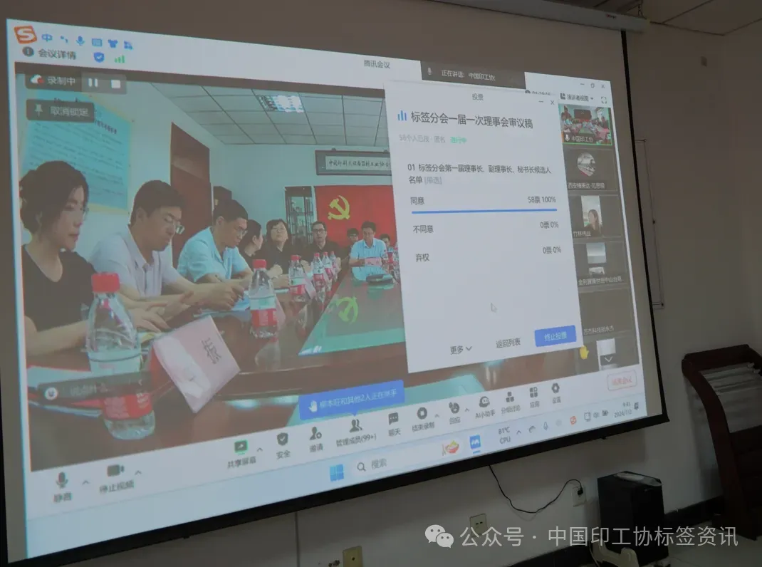2024年7月2日,中國印刷及設備器材工業協會(以下簡稱“中國印工協”)標簽分會第一次會員代表大會暨一屆一次理事會成功召開。會議采取了線上+線下相結合的方式舉行。中國印工協副理事長楊斌,中國印工協副理事長、浙江煒岡科技股份有限公司董事長周炳松,中國印工協監事會秘書長楊俊義,上海寶中寶膠粘制品有限公司總經理黃欽泛,廣東源鐵機械有限公司總經理穆林,東港股份有限公司總經理魏丙生、副總經理湯麗生,北京捷潤科技有限公司總經理劉雅娟,北京星漢特種印刷有限公司總經理常興,凌云光技術股份有限公司印刷業務部副總經理張克軍,紫羅蘭(北京)印務有限公司總經理謝忠年,北京盛華印刷有限公司總經理吳相波,九州中興科技(北京)有限公司總經理薛英才,愛普生(中國)有限公司標簽打印機產品經理李育喜、王雨澄,UPM特種紙紙業格拉辛紙產品經理王嵩,上海安全印務有限公司生產部高峰等25人出席了現場會議,來自中山富洲、中山金利寶、天津香江、上海恒澤等117位企業代表線上出席了會議。會議由中國印工協副秘書長李君主持。