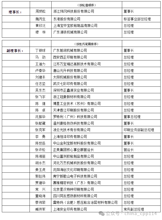 標簽分會第一屆理事會理事長、副理事長、秘書長、副秘書長名單