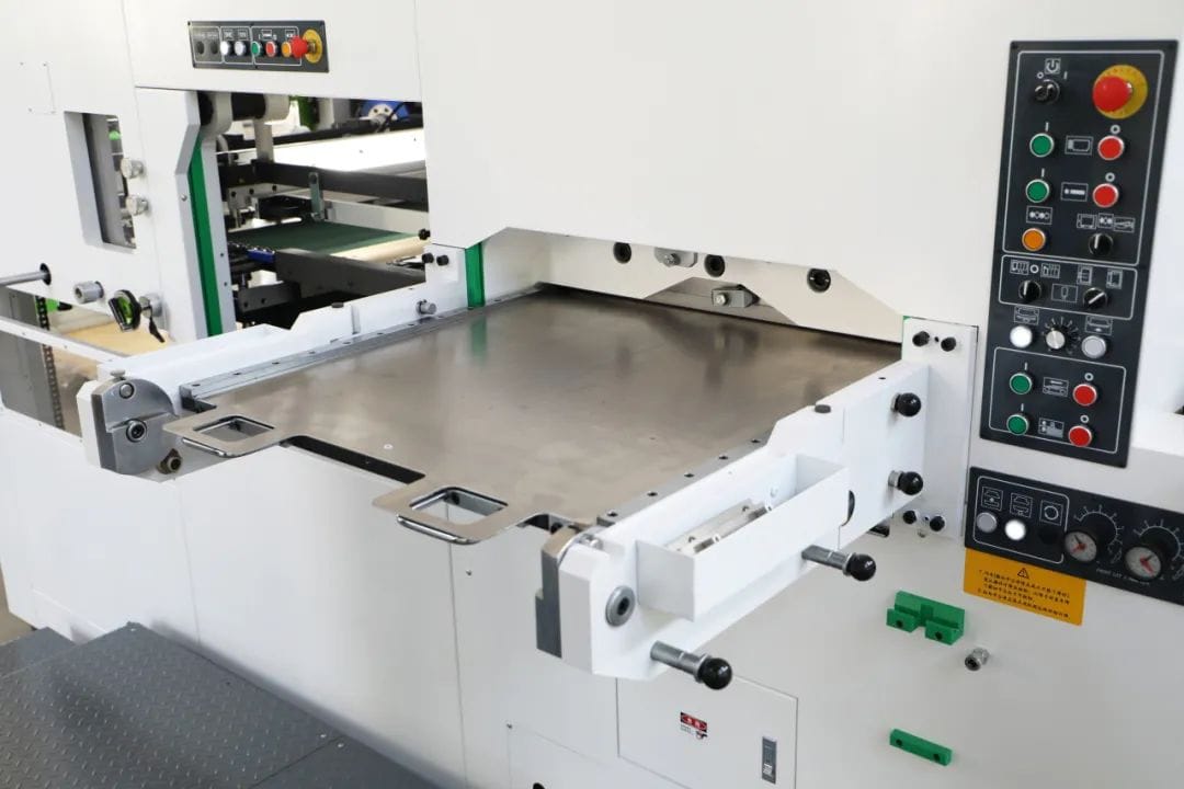 模切部采用固定式高精密度平面模切上工作臺,多片式平行凸輪間歇鏈排傳動機構以及高精密度進口叼紙牙排傳動進一步提升了精度和穩定性。